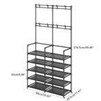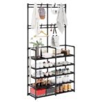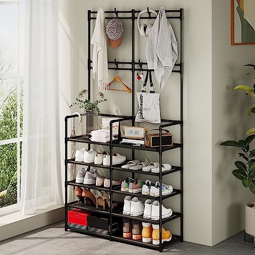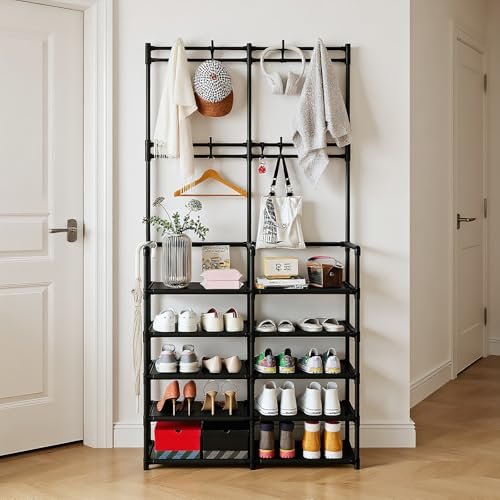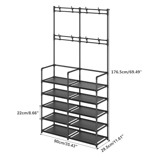 UDEAR 5-Tier Coat and Shoe Rack. Entryway Coat Rack with 8 Hooks. Double Row Shoes Organizer for Living Room. Bedroom. Office. Black