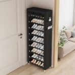 UDEAR Shoe Rack 27 Pairs Shoe with Dustproof Cover.9-Tier Tall Shoe Racks for Room.Entryway.Black