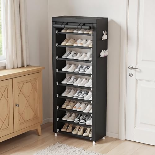 UDEAR Shoe Rack 27 Pairs Shoe with Dustproof Cover.9-Tier Tall Shoe Racks for Room.Entryway.Black