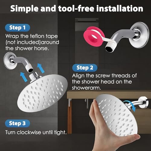 • 【SIMPLE AND TOOL-FREE INSTALLATION】Are you destressed by the high labor costs? There is no need to hire a plumber to come and install our rain setting shower head. and you can easily install them yourself without additional tools! (Only one roll of Teflon tape is required.)