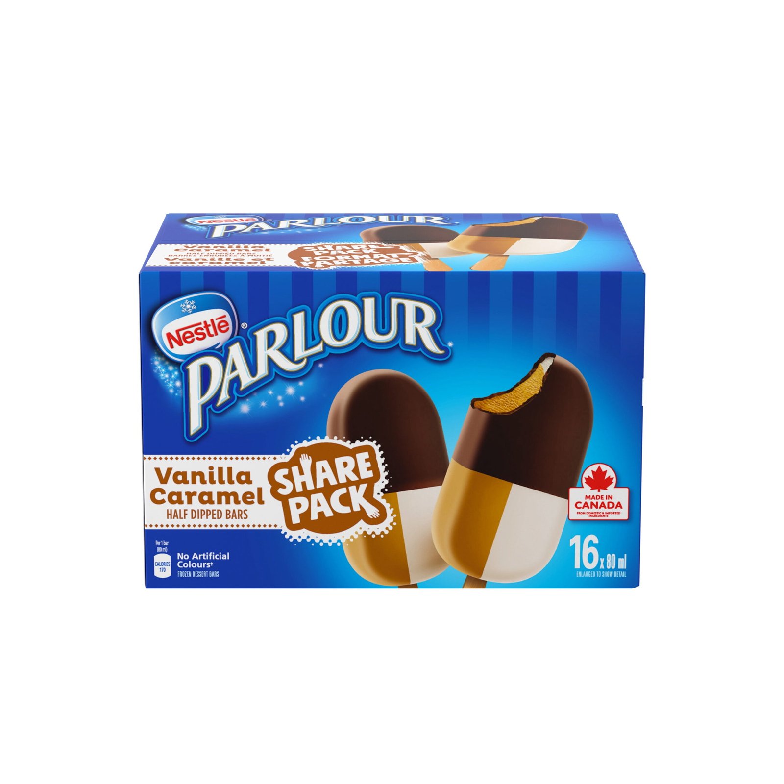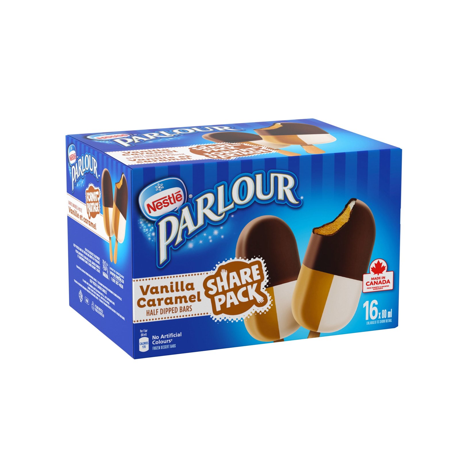 | Ingredients | Ingredients: Frozen dessert: Modified milk ingredients. Sugars (sugar. glucose. sweetened condensed milk. brown sugar). Coconut oil. Milk ingredients. Water. Mono- and diglycerides. Canola oil. Cellulose gum. Propylene glycol monostearate. Carob bean gum. Carrageenan. Salt. Sodium citrate. Soy lecithin. Potassium sorbate. Citric acid. Caramel colour. Annatto. Natural and artificial flavour. Coating: Coconut oil. Palm oil. Sugar. Cocoa. Modified milk ingredients. Milk ingredients. Unsweetened chocolate. Soy lecithin. Natural flavour. |