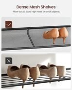 • [Holds More Shoes] This 5 tier shoe rack can hold 16-20 pairs of shoes with the top board; the distance between each of the 4 mesh shelves is 8 to fit heels and high tops on the shelves
