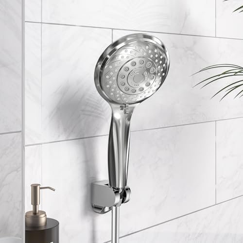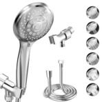 VEHHE 6 Spray Modes Handheld Shower Head Saving Water. Bright Shower Head with Anti-Clog Nozzles and Anti-Leak. Shower Head with Hose 1.5M and Adjustable Universal Bracket∣Silver