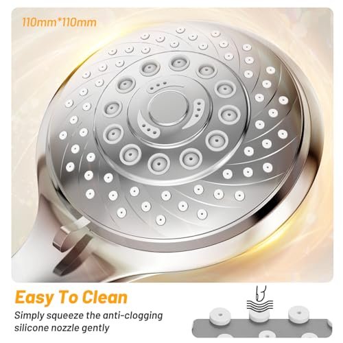• 【EASY TO INSTALL AND CLEAN】The shower head is very easy to install. as long as it is aligned with the interface and gently rotated. the shower head can be successfully installed. It is suitable for most standard fittings and hoses. The features an Anti-Clog Nozzles. which can efficiently clean impurities that cause blockages. extending the service life of the shower head.