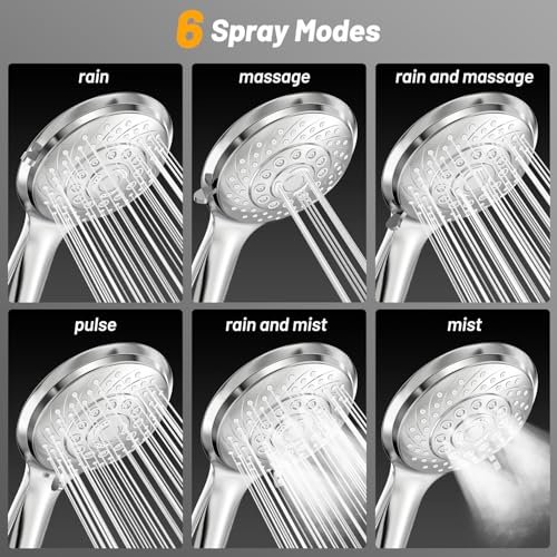• 【6 SPRAY MODES SHOWER SAVES WATER】The handheld shower head has 6 spray modes: rain. rapid. atomization. and multiple mixing modes. Gently rotate the handle on the shower head panel to freely switch between different modes and fully enjoy the fun of showering.