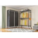 VIPEK R2C Heavy Duty Rolling Garment Rack with Cover. Portable Closets with Double Rods & Lockable Wheels. Covered Clothing Rack for Hanging Clothes. Black Rack with Black Upgarded Polyester Cover