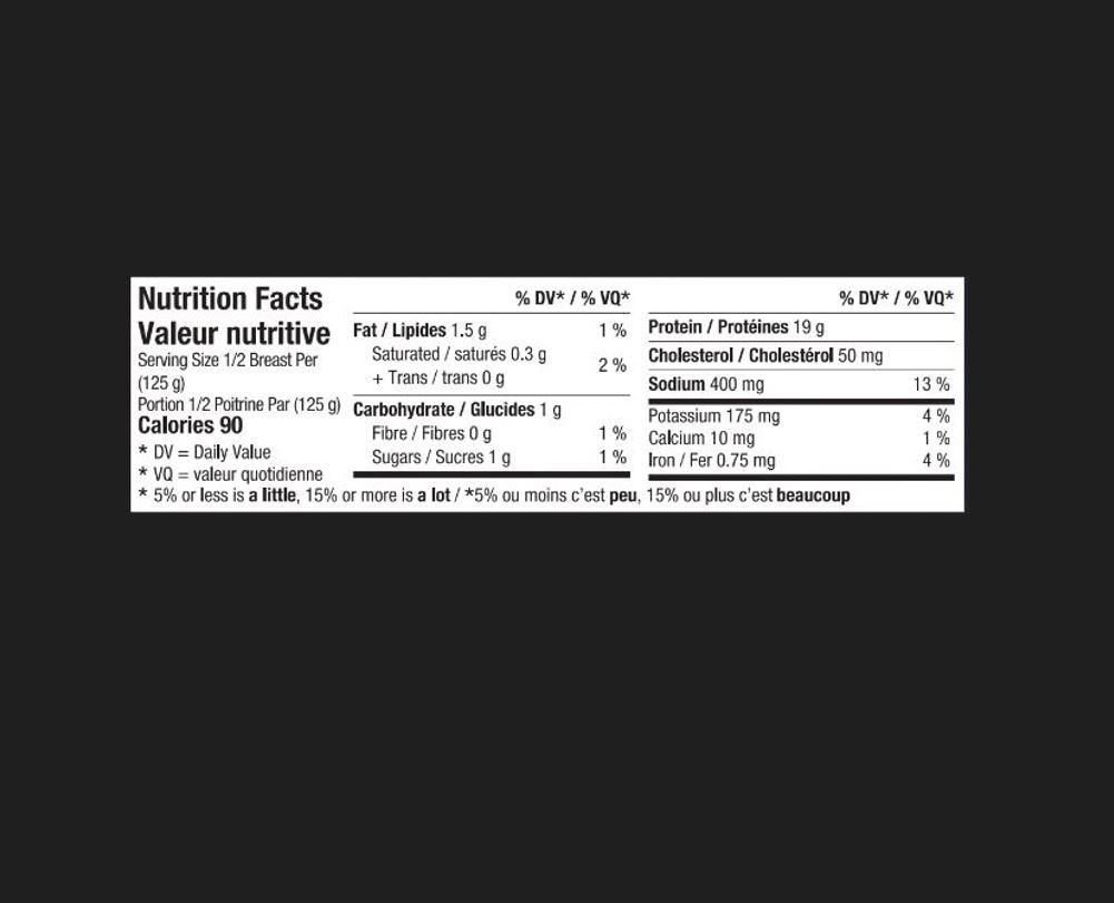 Watson Ridge Barbecue flavour Chicken Breasts are moist and tender and low in fat.  Skinless. boneless and available in a value-sized 1.5kg package.  Use them in many recipes including stir fry. and sliced in a chicken salad.