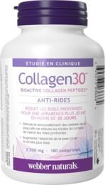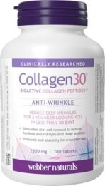 Webber Naturals Collagen30 Anti-Wrinkle. 2.500mg of Bioactive Collagen Peptides Per Serving. 180 Tablets. Helps Reduce Deep Wrinkles. Fine Lines & Stimulates Skin Cells