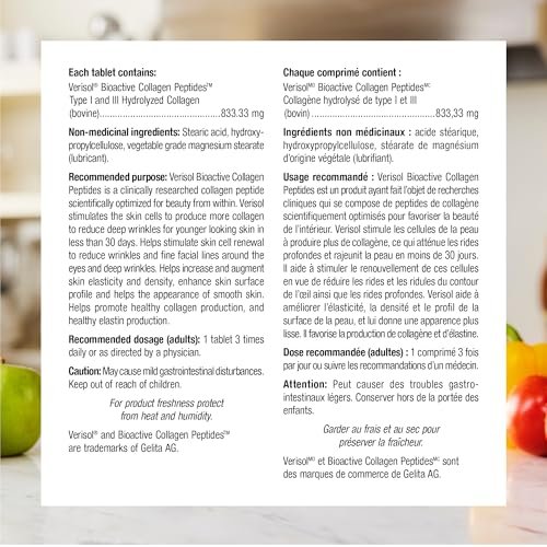 • Clinically Studied: Verisol is a unique complex of bioactive collagen peptides providing type I and type III hydrolyzed collagen. It is much easier for the body to absorb and use than food sources of collagen because it is broken down into smaller. easy-to-digest units. Verisol has been clinically researched to promote healthy collagen and elastin synthesis. helping to reduce wrinkles and fine facial lines for a smoother skin appearance