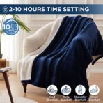 Westinghouse Electric Blanket Throw Heated Blanket with 6 Heating Levels and 2-10 Hours Time Settings. Flannel to Sherpa Super Cozy Heated Blanket Machine Washable. 50×60 inch. Navy