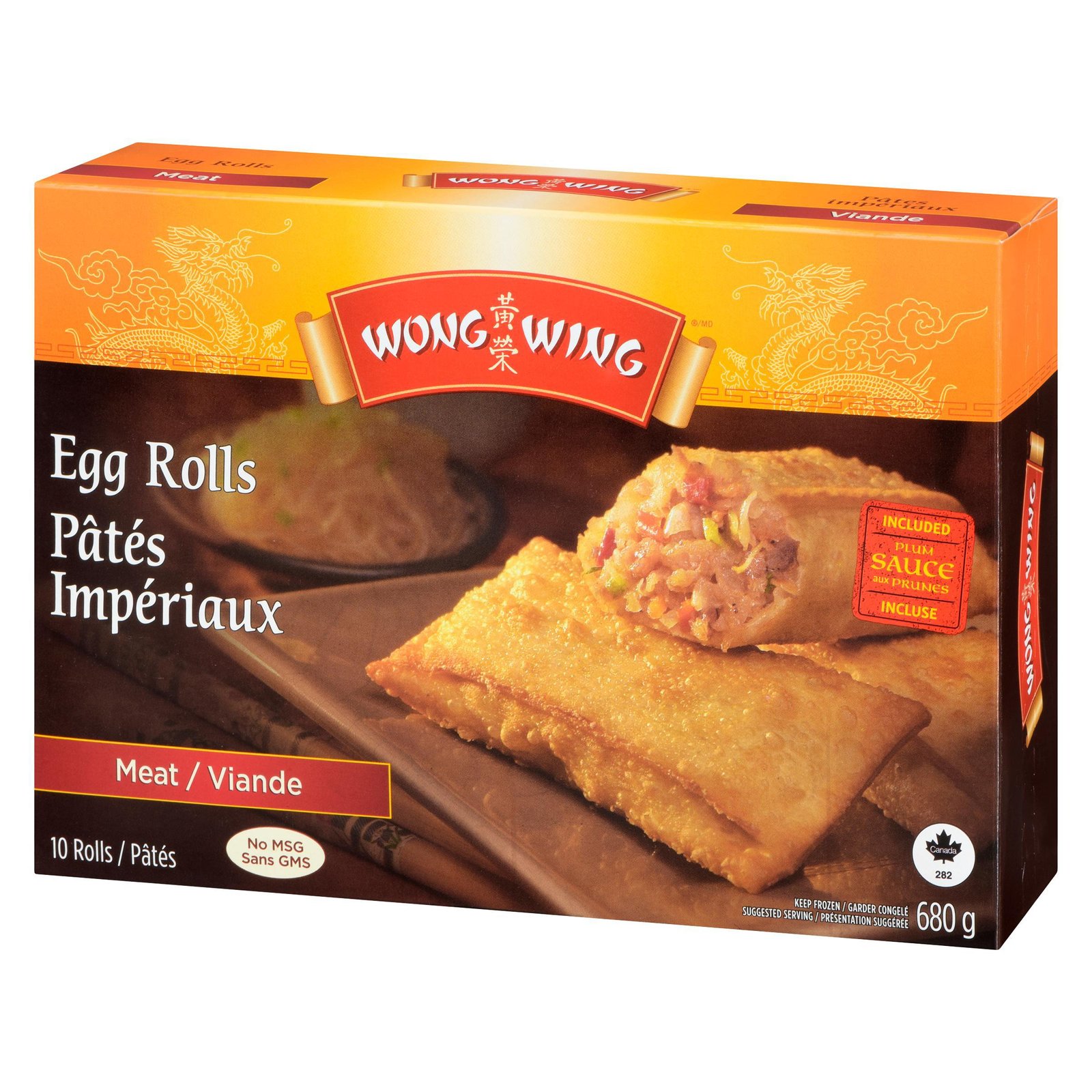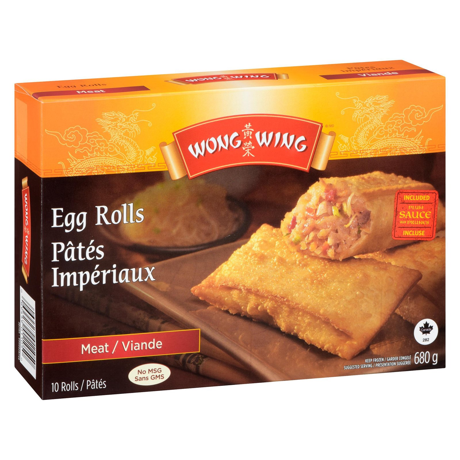 Wong Wing Meat Egg Rolls. 10 Meat Egg Rolls with sauce