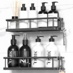YASONIC Shower Caddy Adhesive. No Drill Bathroom Shower Organizers. with Removable Hooks. Rust Proof Shower Shelves. Wall-Mounted Shower Holder. Black. 2 Packs