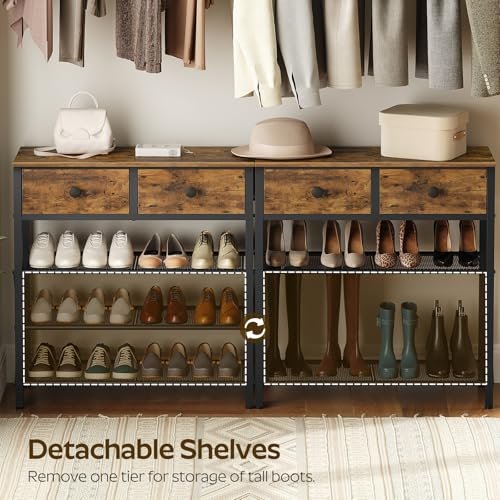 • Shoe Rack with Drawers: Equipped with 2 non-woven fabric drawers. this shoe rack for front door entrance fulfills your daily storage needs for items such as keys. gloves. dog leashes. hats. scarves. and other sundries. keeping your entryway tidy and organized