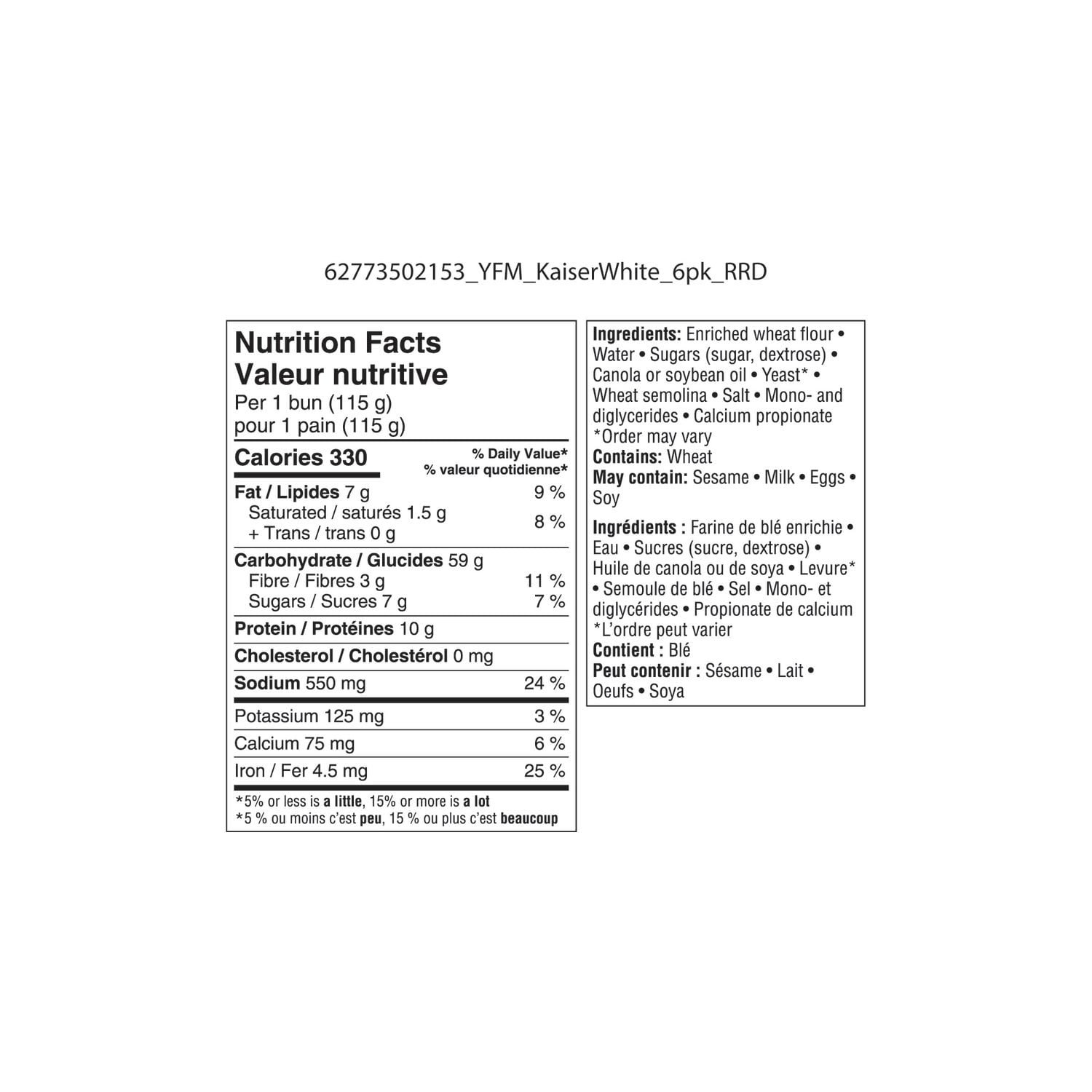 Your Fresh Market™ brings you bakery style breads that give your meals that extra-special touch. Your Fresh Market™ Kaiser Buns have a deliciously soft center with a crispy outer crust that holds up to your heartiest sandwich creations.• Great for burgers and sandwiches