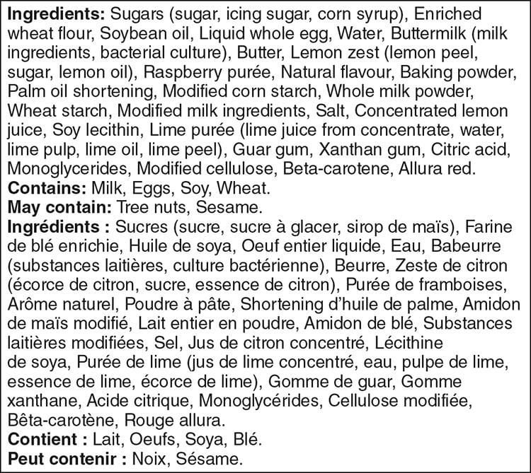 Our loaf cake is made with real butter and buttermilk for quality you can taste. and for a wonderfully rich and moist crumb. Every bite combines the zestiness of natural lemon with the succulence of raspberries. With a stripe of sweet white icing on every slice. it’s a treat that will satisfy dessert lovers of all ages.