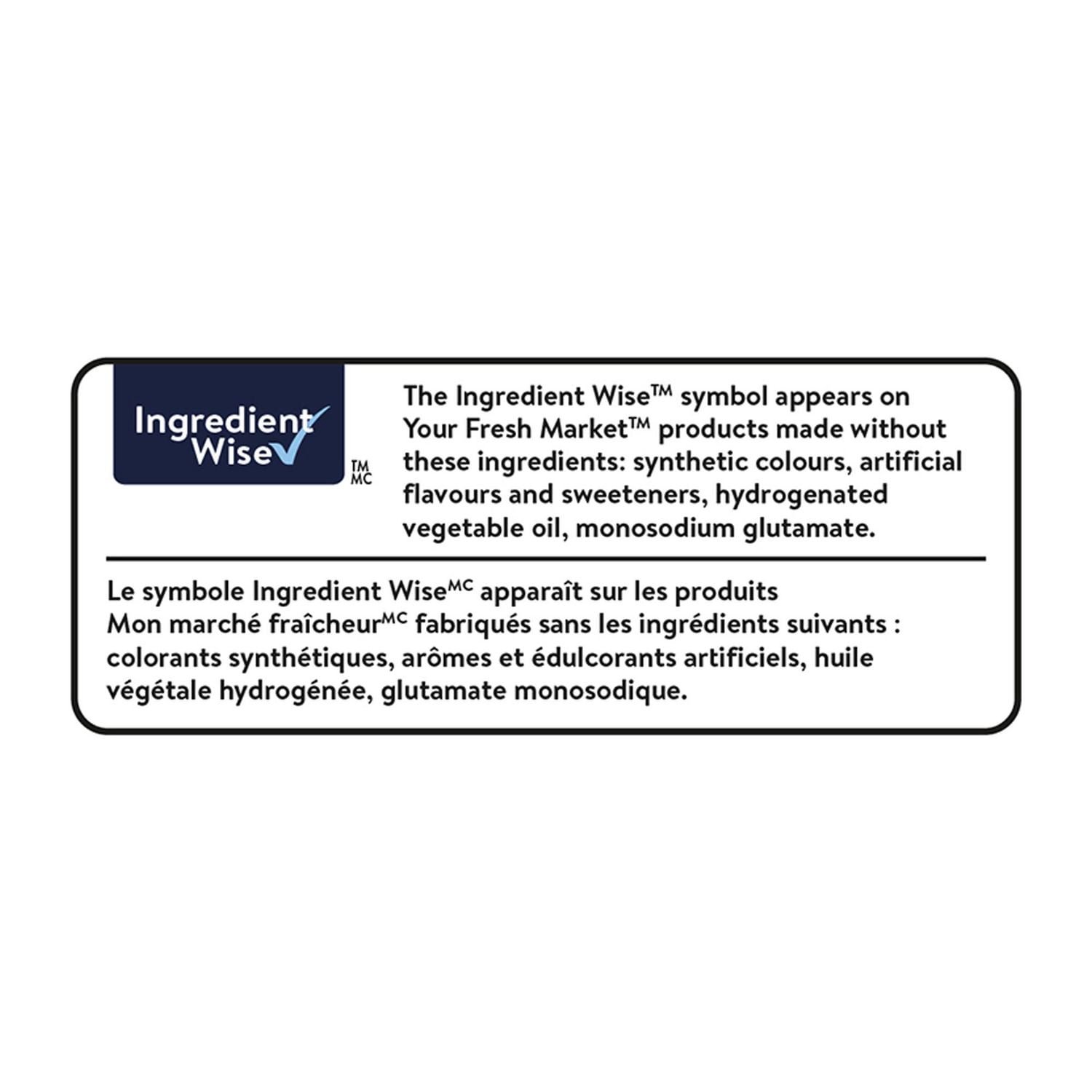 The Ingredient Wise™ symbol appears on Your Fresh Market™ products made without these ingredients: synthetic colours. artificial flavours and sweeteners. hydrogenated vegetable oil. monosodium glutamate.• 12 muffins per package