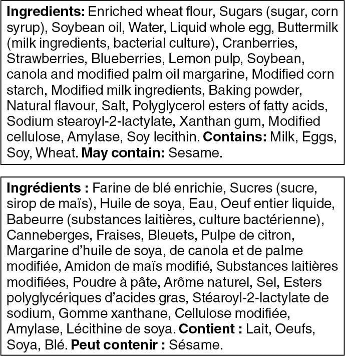 Our peanut-free. kosher muffins are made from wholesome buttermilk. along with real lemon. cranberries. strawberries and blueberries for a fruit filled baked treat you can feel good about sharing with family. friends and colleagues alike. Sweet!